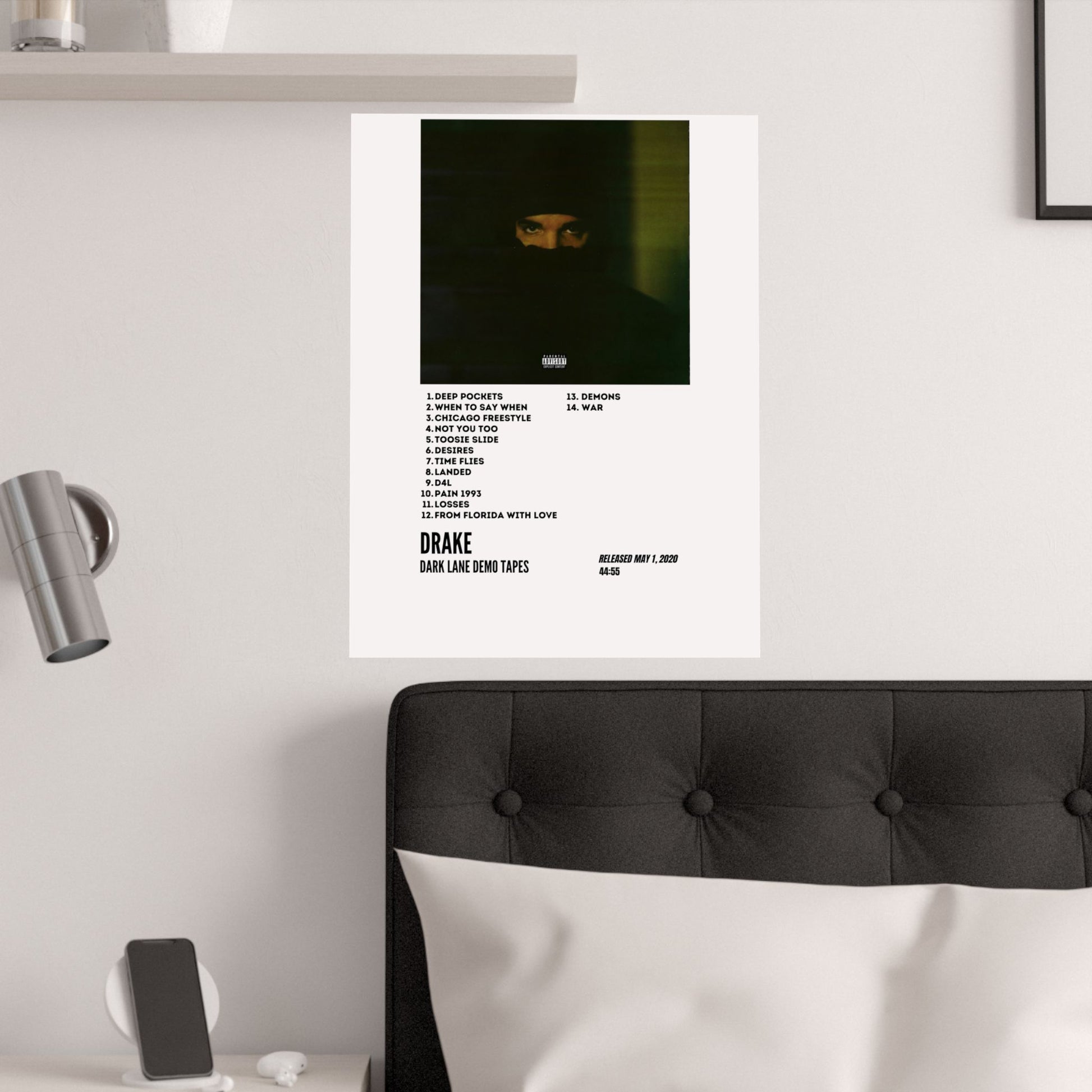 Elevate your space with these stunning Drake Satin Poster، Dark Lane Demo Tapes Album. Each poster showcases vibrant colors and sharp details that capture your imagination.